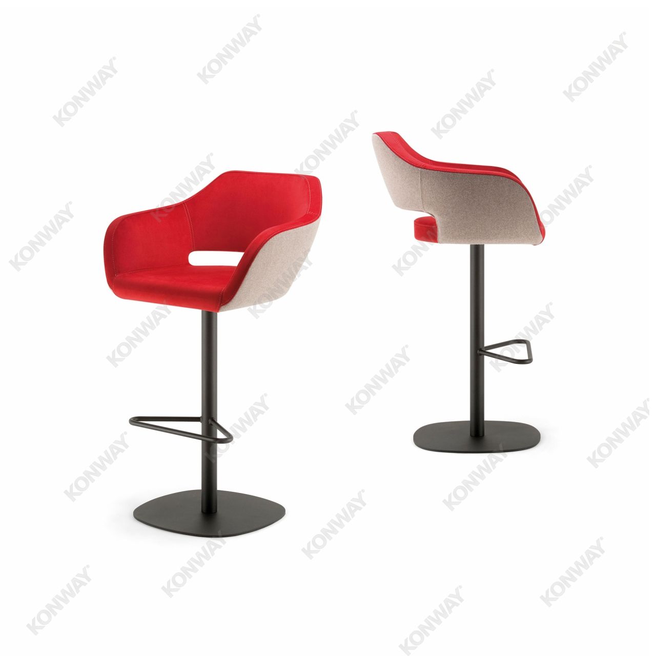 Moderner Barhocker mit einem Stahlrahmen als Basis, mit Säulengestell auf runder Bodenplatte, verchromt oder pulverbeschichtet nach Hauskollektion. Polsterung mit Schäumen hoher Stauchhärte, Ausführung Weißpolster. Bezug mit objekttauglichen Materi ...Weiterlesen